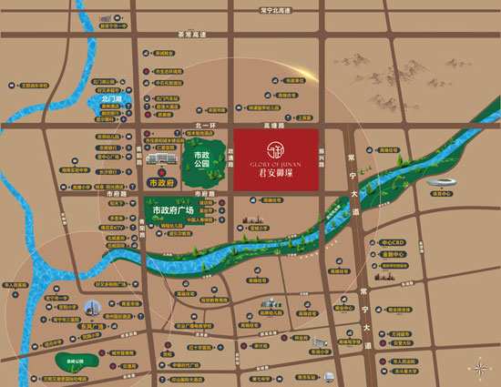 常宁君安御璟位于常宁市北一环嵩塘路,项目总占地面积:78165.9㎡,总建筑面积:245626.4㎡,容积率:3.0,规划约3万㎡中心景观园林,由湖南益兴置业有限公司开发建设。
