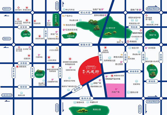 衡阳西合大成府位于蒸湘区衡祁路与西合路交汇处,占地面积:24533.12㎡,建筑面积:111109.38㎡,容积率:3.63,绿化率:33.08%,楼栋总数:8栋,总户数:699户,物业公司:衡阳贵泉物业管理有限公司,停车位:664个(地上70个,地下594个),开发商:衡阳荣成房地产开发有限公司